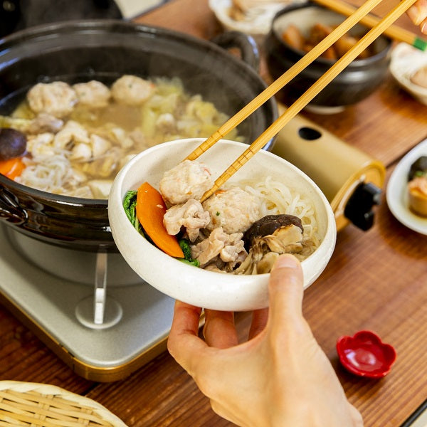 肉はもも、むね、ささみの3部位がひと口サイズに切られていて、食感・味の違いも楽しく、どんどん食べてしまいます。ふわっと柔らかいつみれは、ゆずの香りと野菜の甘みが効いていて、スープが染みると箸が止まらない味わいに。シャモロックのガラで出汁をとったスープ付きなので、好みの野菜やきのこなどを準備しておくと、すぐに楽しめます。(※商品は冷蔵庫でひと晩ほど解凍してください。)